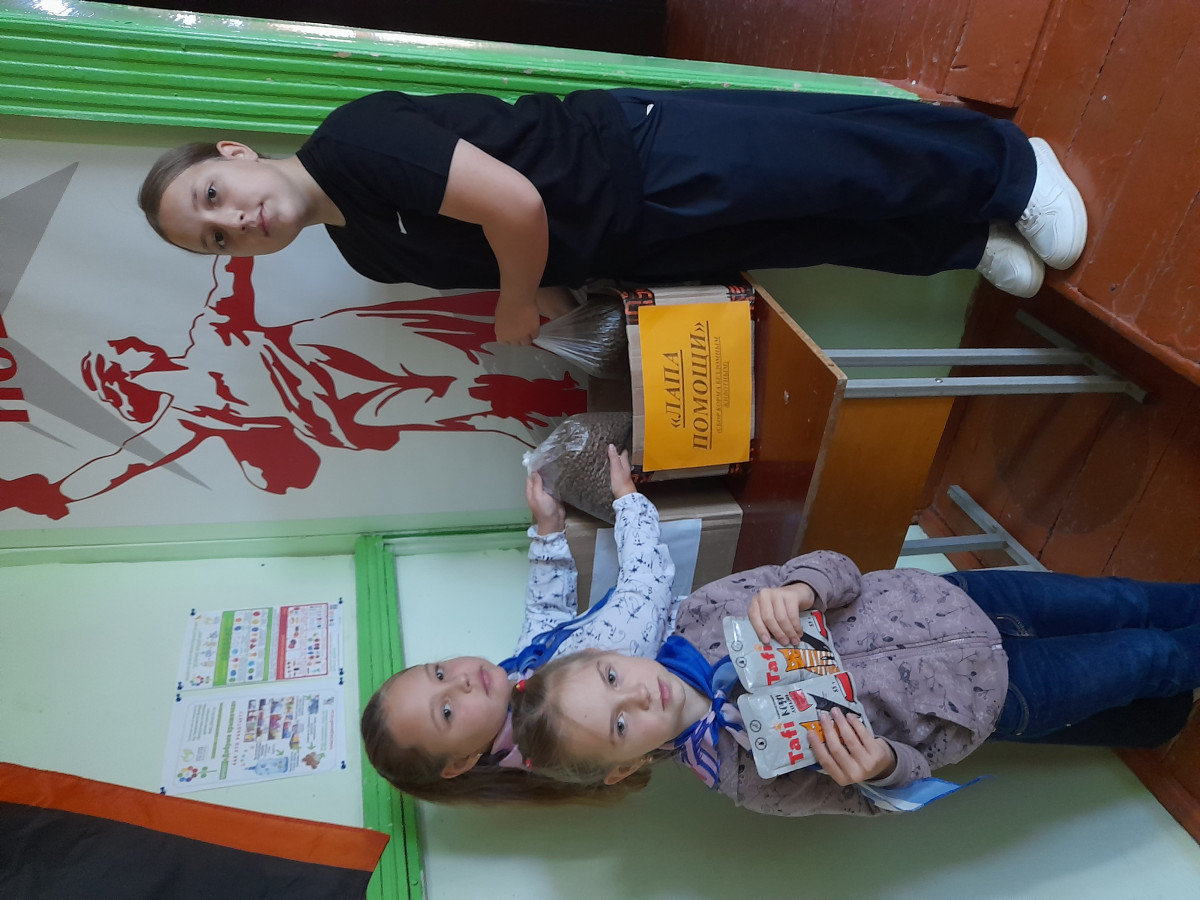 Четвероклассницы , посмотрев фильм "Первое дело", сразу решили , что будут помогать приюту, соберут сухой и жидкий корм для бездомных кошек. В течение месяца девочки участвовали в акции "Лапа помощи", к ним подключились остальные учащиеся школы. Конечно, собрали немного : всего одна небольшая коробка, но, надеемся, что хотя бы на несколько дней животные обеспечены кормом. За это время обнаружили еще один приют для домашних животных : и кошек , и собак. Приюту очень нужна помошь, будем собирать корм, лекарства.