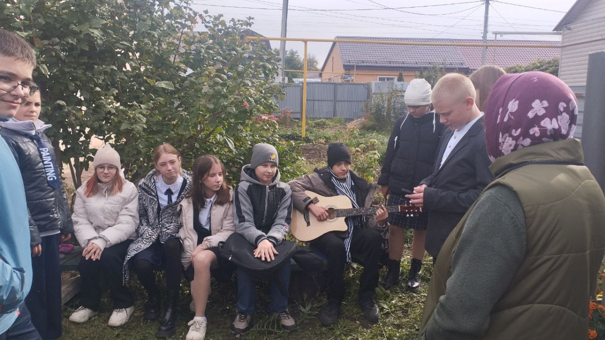 3 октября, накануне Дня учителя, весь класс отправился поздравлять учителей - ветеранов пед.труда. Наряду с поздравлениями ребята исполнили песни "Ты мне не снишься", "Белые розы", "Большая Медведица", "Там, где клен шумит", которые учили к несостоявшемуся концерту.