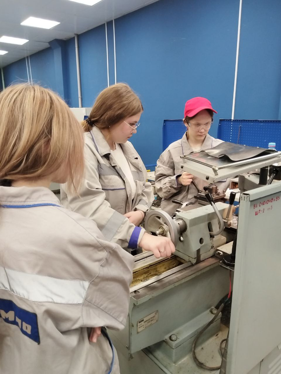 Девочки точили на токарном станке под чутким руководством студентов. Осознать, как из грубой заготовки рождается ровная деталь — это бесценно!