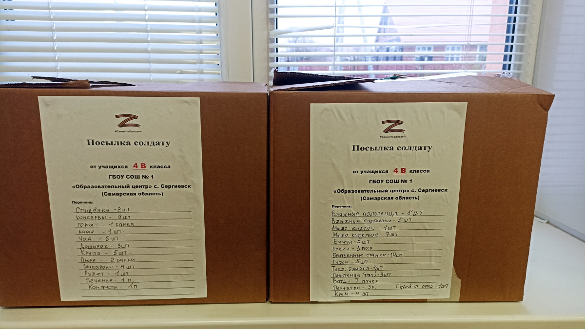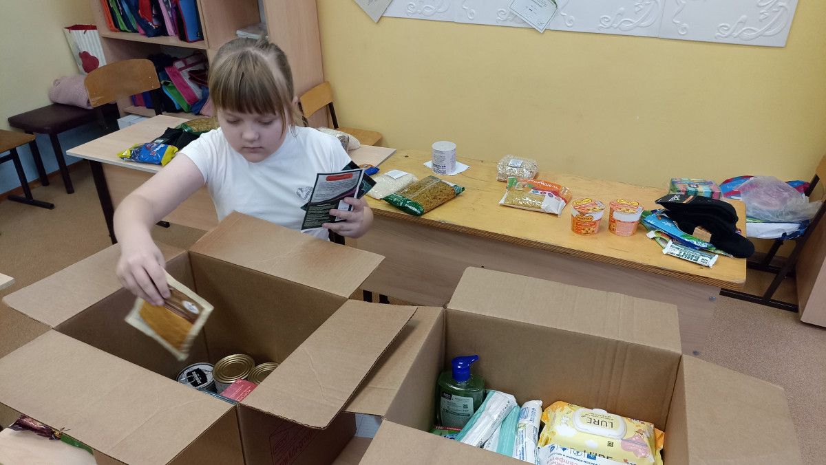 Ребята и родители класса решили не оставаться в стороне и предложили принять участие в акции «Посылка солдату». Дети написали письма-рисунки с пожеланиями скорейшего возвращения живыми домой. Родители собрали посылки.