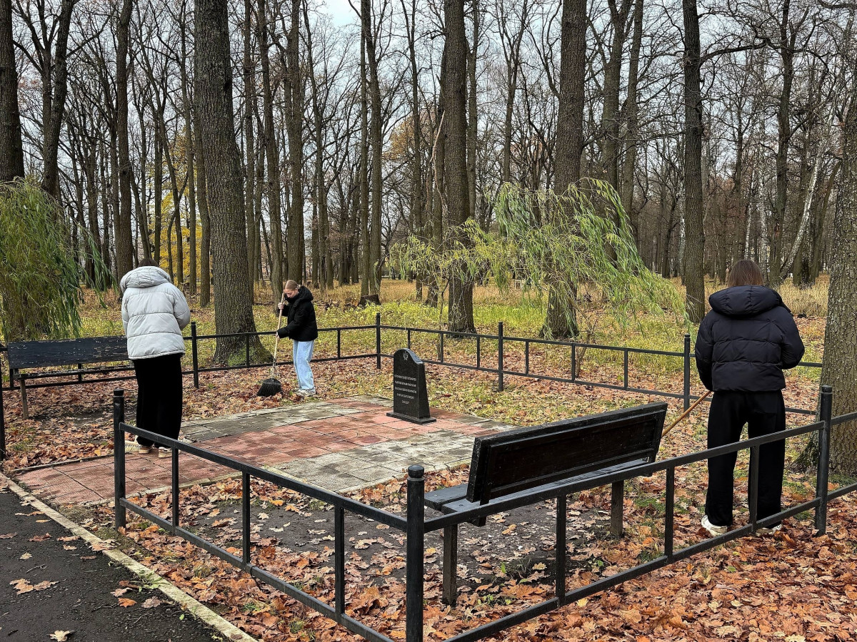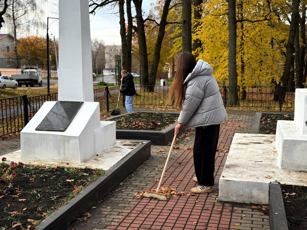 Ребята решили принять активное участие в уборке городской Аллеи Славы, а также привели в порядок памятные плиты. К своей работе обучающиеся отнеслись ответственно: дети принесли грабки, метла.