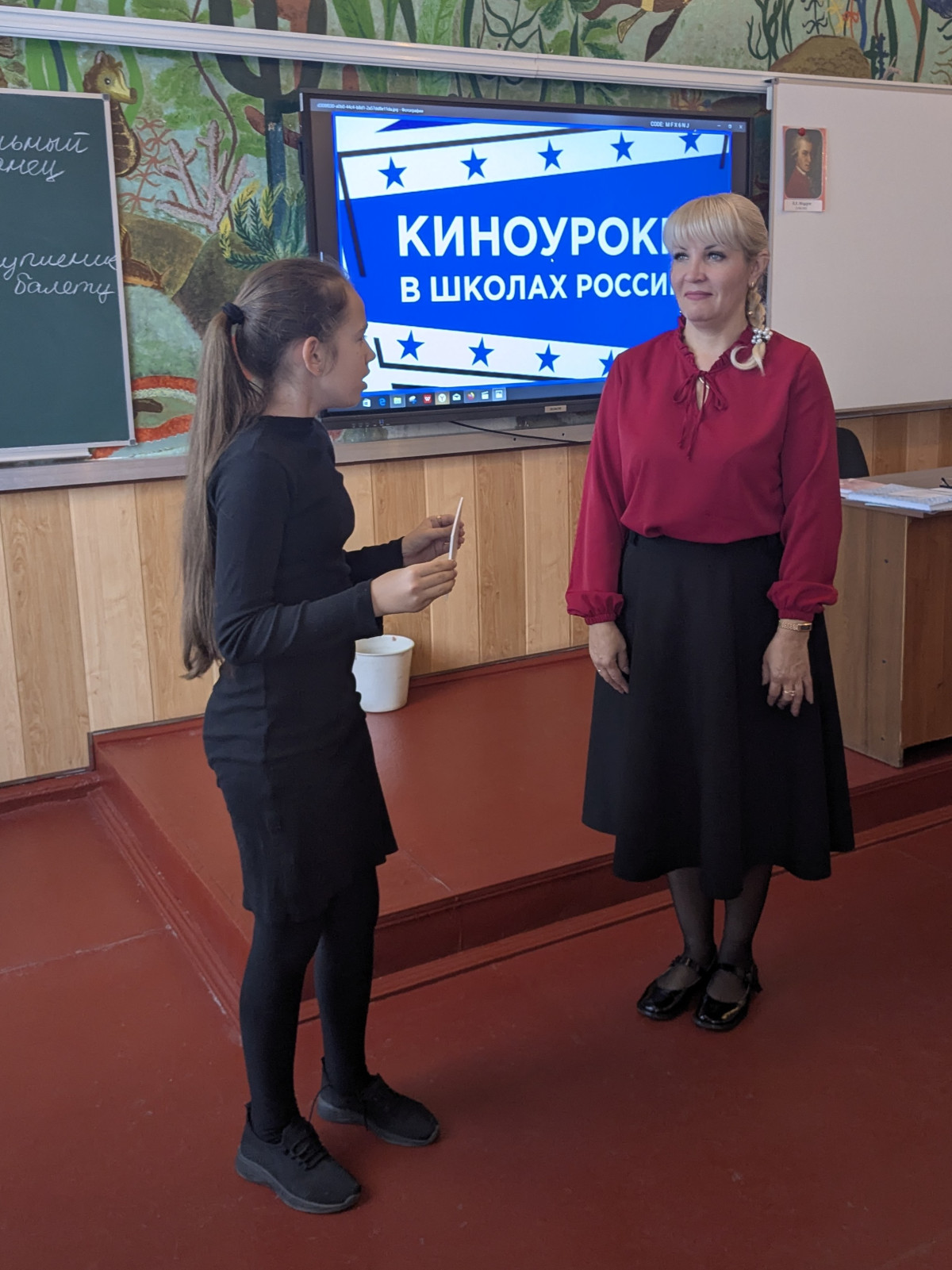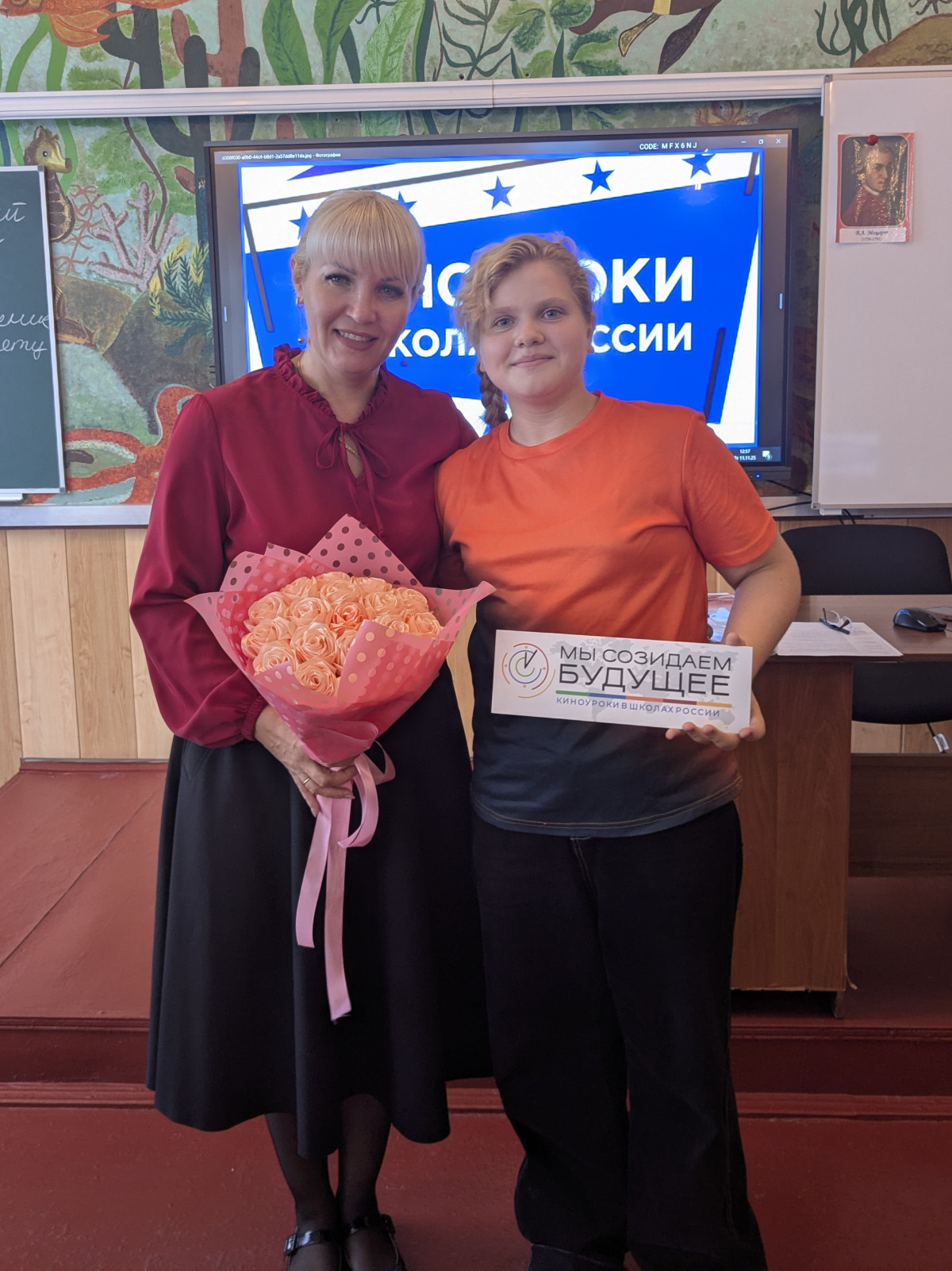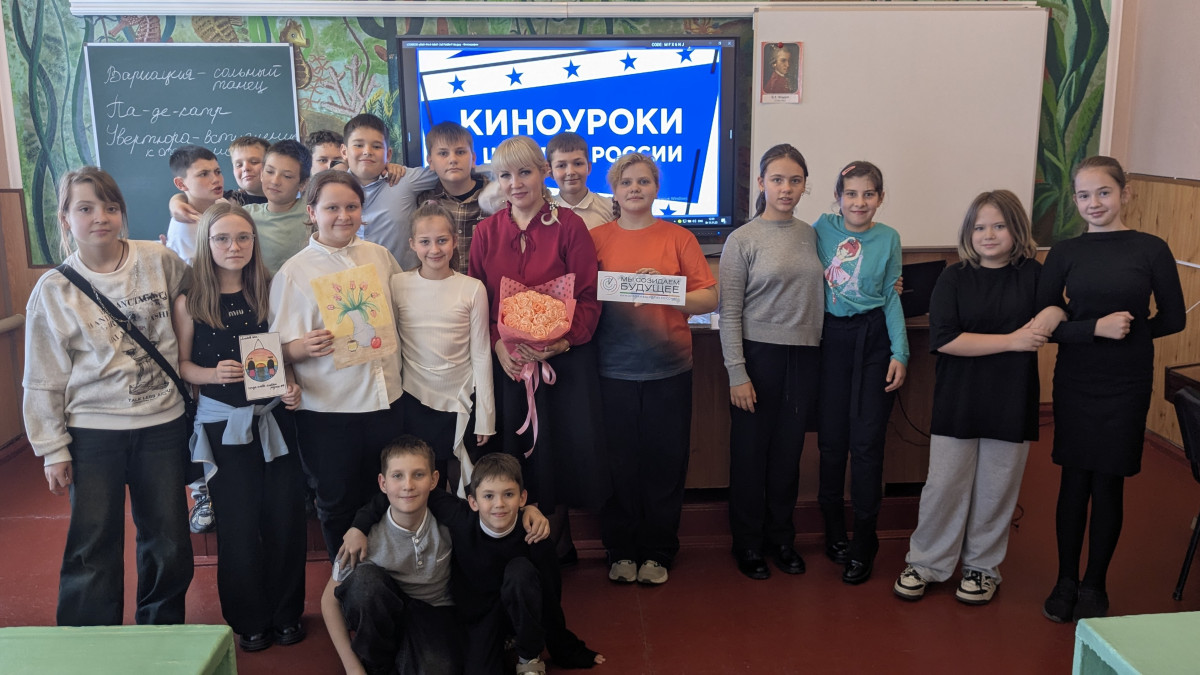 В рамках проекта «Киноуроки», после просмотра фильма "Великий", учащиеся 5-Б класса решили выразить свою искреннюю благодарность учителю музыки Полищук Ольге Ивановне. Этот проект стал прекрасным поводом продемонстрировать глубокую признательность и уважение к своему наставнику, чье влияние на учеников выходит далеко за пределы школьных уроков.