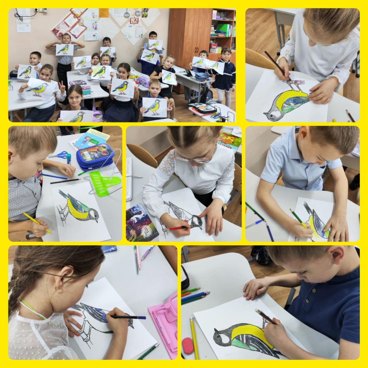 Второклассники предложили рассказать о том, что они узнали и другим ребятам начальных классов нашей школы. А чтобы они не забыли про этот праздник, нарисовали в подарок каждому классу синицу. «Вроде бы простая птичка, но уж очень много разных оттенком имеет её оперение» - рисую синичку прокомментировал Саша .