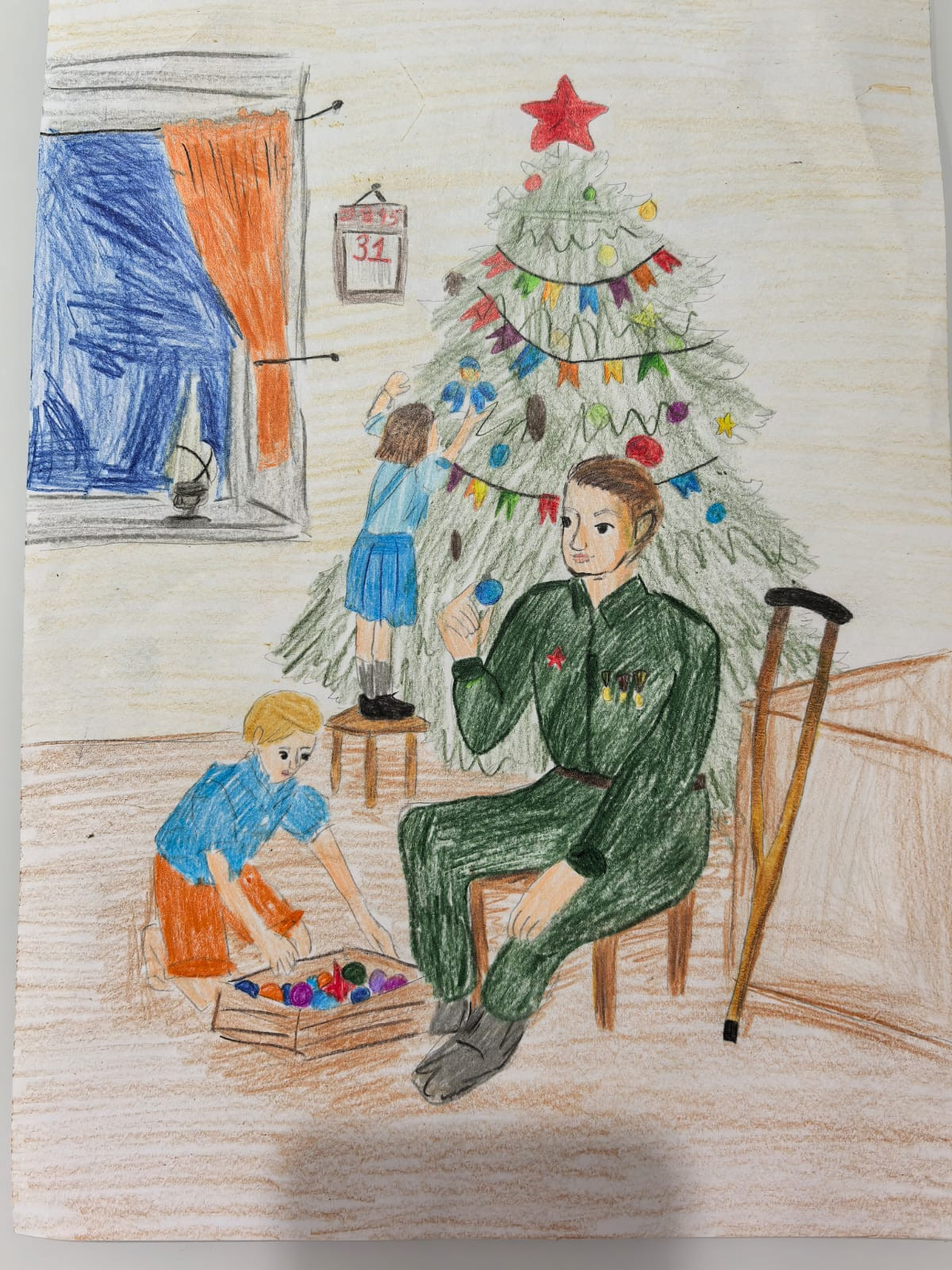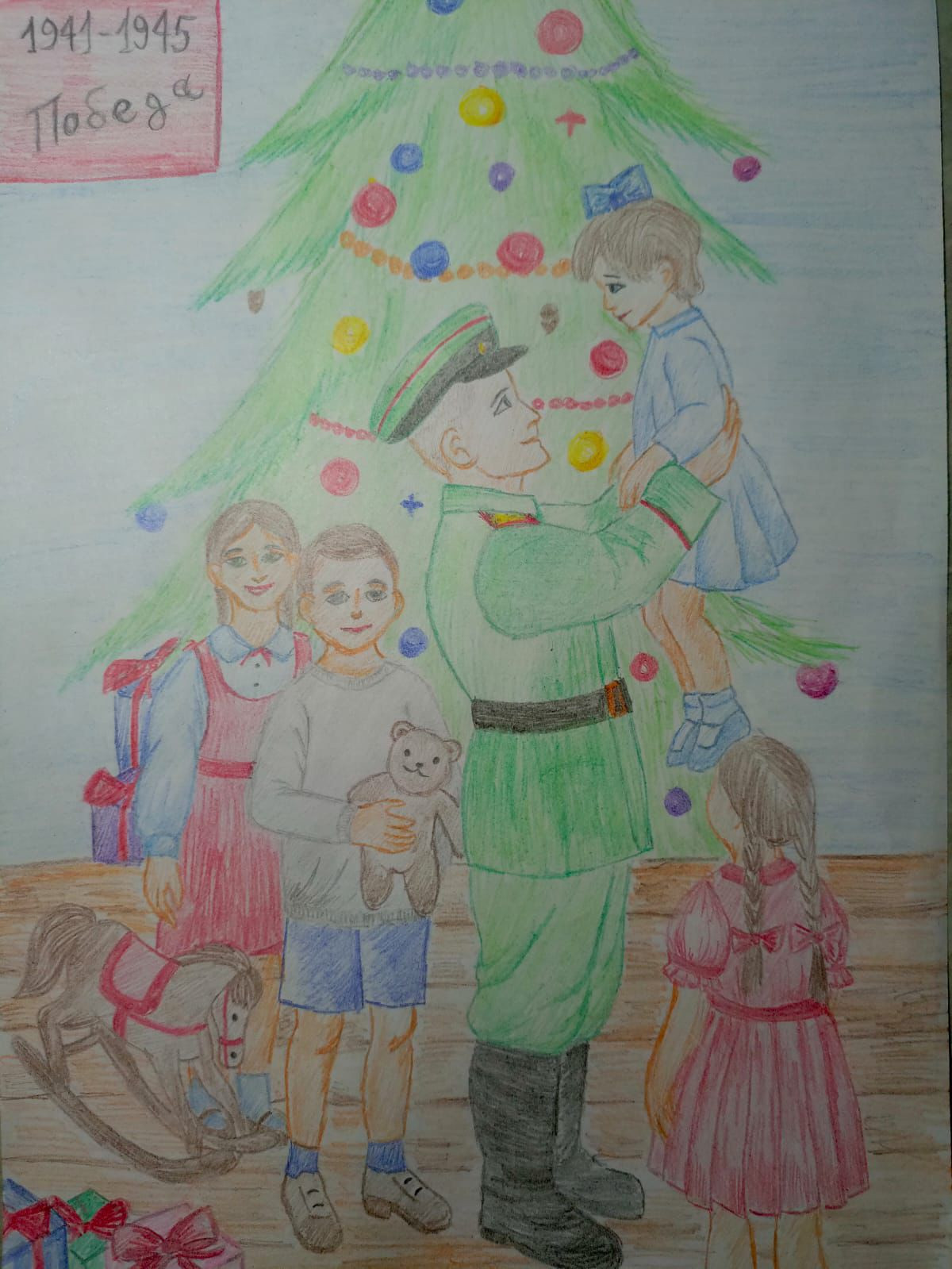 И вот…Объявлен очередной конкурс «Ёлка Победы ..» Конкурс рисунков. Конечно же не обошлось без помощи родителей. Старались рисовать все. Но, кто-то рисовал сам, а кто-то из ребят полностью доверил это дело взрослым. Рисунки получились разные. Все выполнены с собственной аккуратностью, с личным представлением о том, какой была эта Ёлка? Рисунки рассматривали в классе. И кто-то из ребят сказал:
