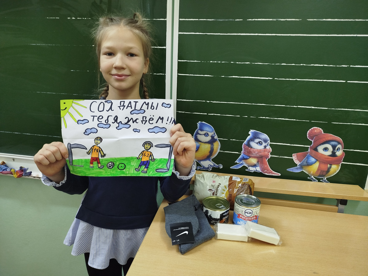- Ученики 4а класса, при помощи родителей, решили оказать поддержку нашим солдатам на Украине.