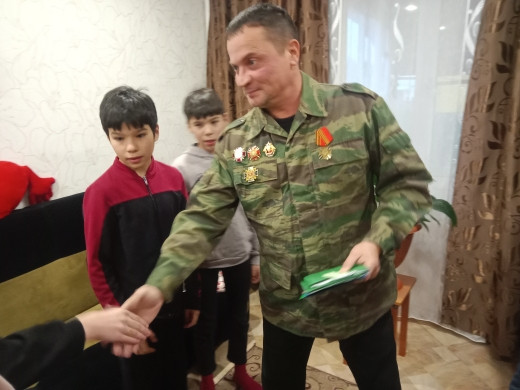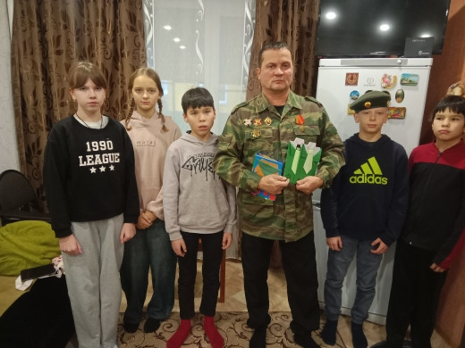 В рамках Всероссийского проекта «Киноуроки» ребята из 6 класса МБОУ Тверецкая СОШ вместе с классным руководителем просмотрели фильм «Честь имею». Фильм детям понравился, и произвел сильные впечатления. Образ и черты характера главного героя, который смог отстоять свою точку зрения , помогал нуждающимся в помощи не оставили ни кого равнодушным. После обсуждения фильма в качестве социальной практики ребята предложили выразить благодарность своему земляку, ветерану боевых действий. Предварительно дети изготовили открытки, в которых написали пожелания здоровья и благополучия. На встрече задавали вопросы о службе на Кавказе. Почтили минутой молчания погибших однополчан ветерана. Все прошло в теплой и дружеской обстановке. На память сделали фото. Я считаю такие встречи это дань уважения людям, защищавшим наше мирное существование.