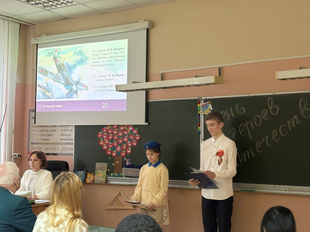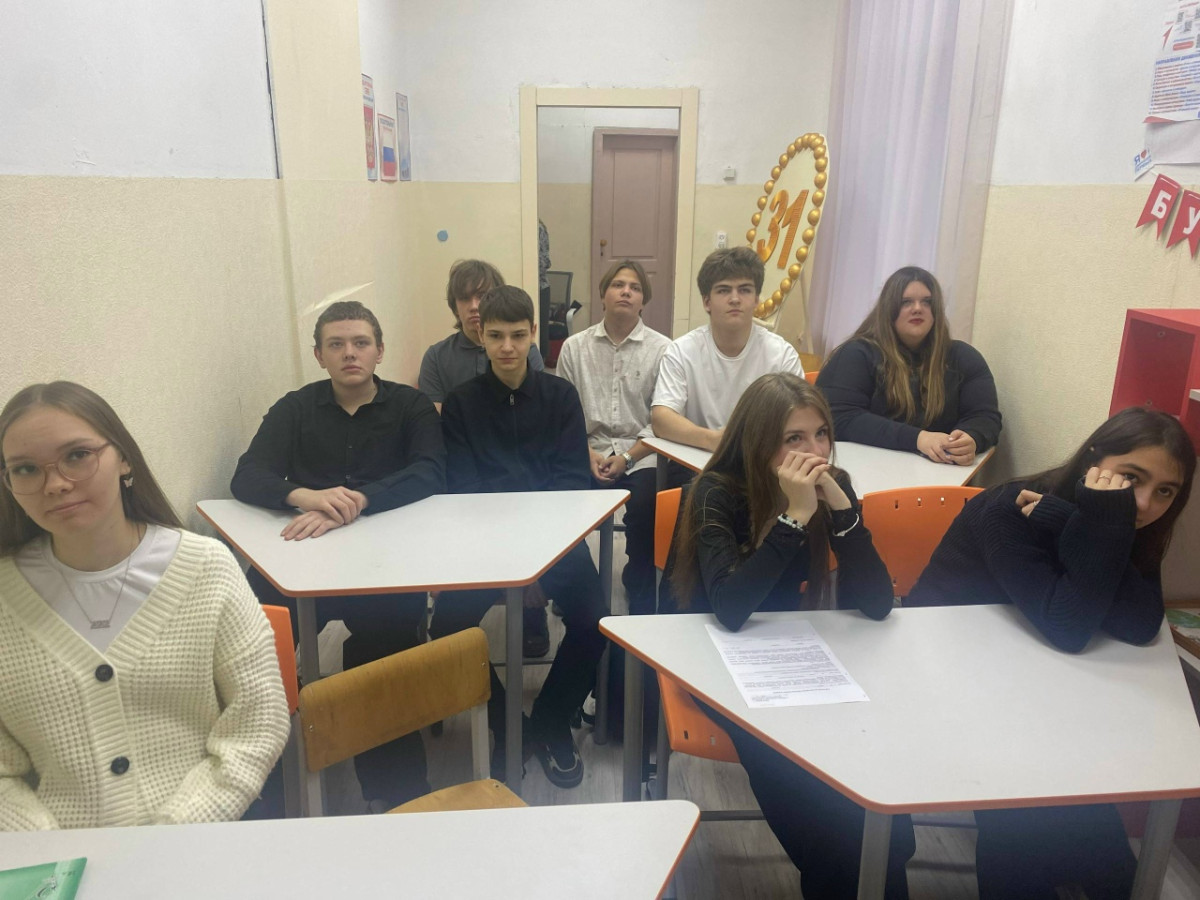 Ученики 10 класса вместе с советником директора по воспитанию посмотрели киноурок "Крепость", фильм произвел на учеников большое впечатление: ребята делились друг с другом мнениями о поступках героев, о роли и месте каждого человека в социальных группах и стране в целом. Единым решениям была совместная организация школьного мероприятия для других старшеклассников "День героев Отечества" в формате встречи с ветераном-героем.