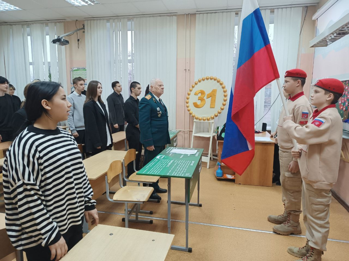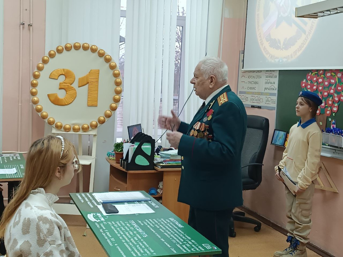 Старшеклассники активно готовились вместе с педагогами к встрече с ветераном военной службы, назначили ведущих, пригласили отряд Юнармии для торжестенного выноса флага, подготовили тематические стенды и вопросы к гостю.