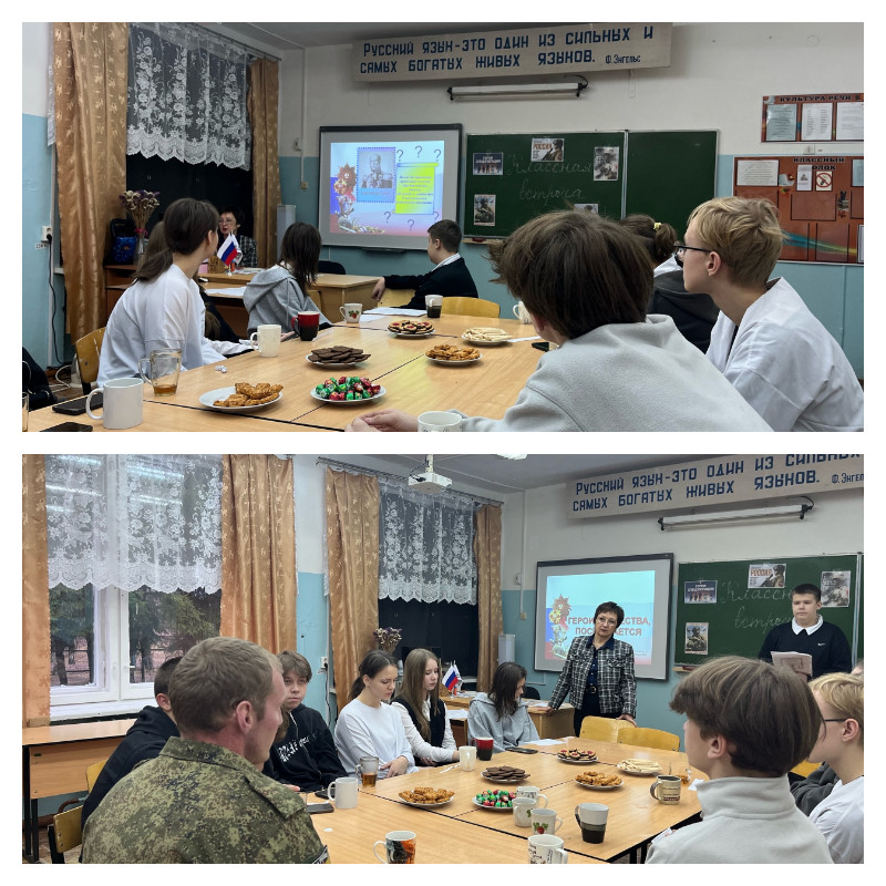 В теплой атмосфере, за чашкой чая встреча пролетела незаметно. Успели задать волнующие подростков вопросы, читали стихи. И даже провели игру ЧТО? ГДЕ? КОГДА? «Вам, герои Отечества, посвящается», которую создали мальчики. Мероприятие прошло динамично, с небывалым азартом.