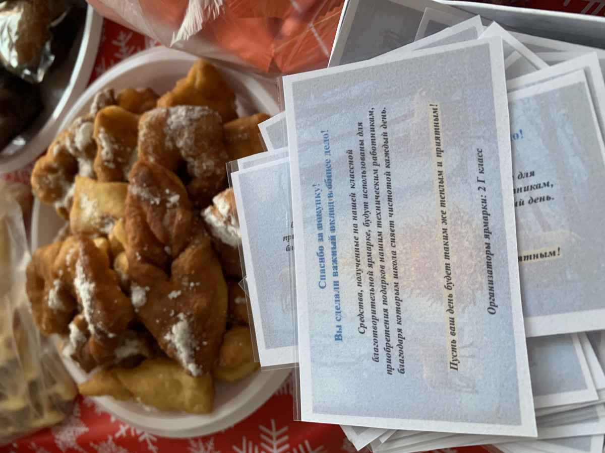 Ребята захотели сами заработать на подарки, устроив небольшую ярмарку на территории школы. Они готовили поделки, выпечку и продавали их одноклассникам и учителям. Полученную прибыль использовали для покупки приятных сюрпризов, которые вручили нашим любимым помощницам перед Новым годом.
