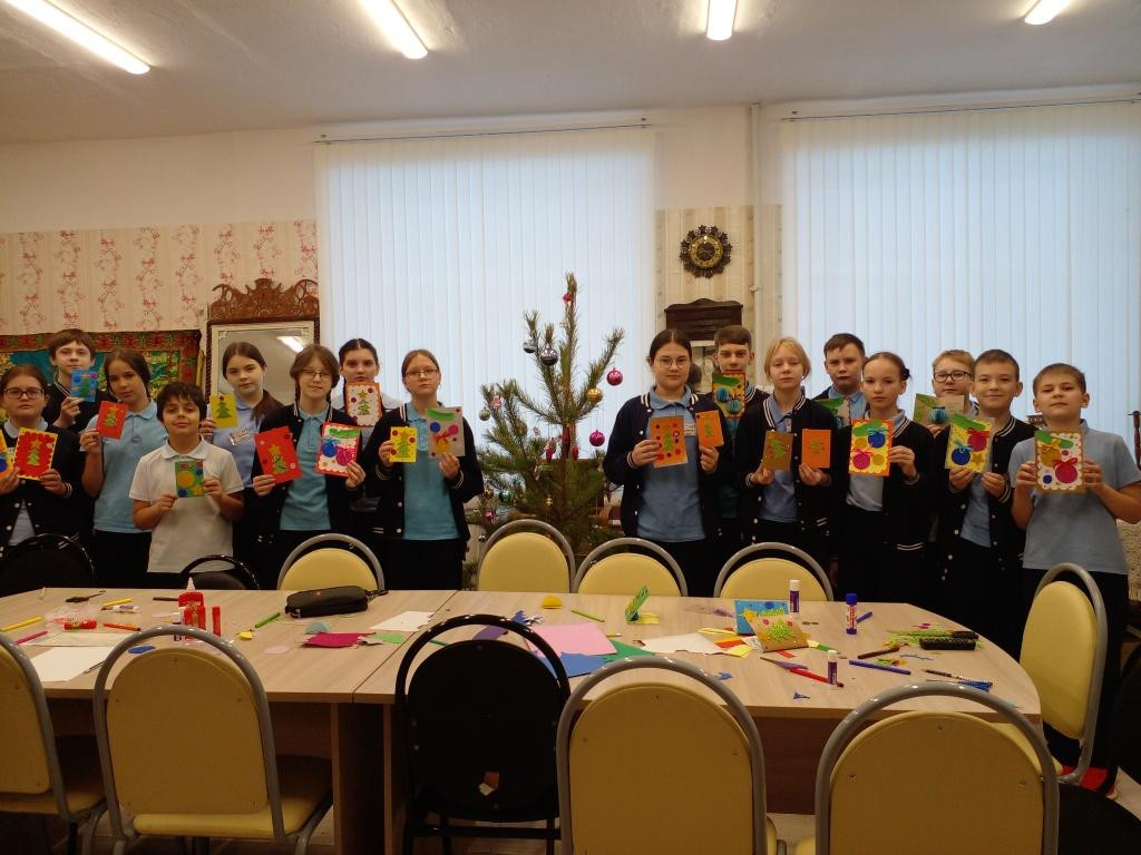 Ребята вызвались украсить в школьном музее ёлку, которая очень хорошо дополнит экспозицию «Быт советского периода», так как будет украшена игрушками 50-60-х годов. Конечно же, захотелось создать праздничное настроение защитникам Родины – участникам СВО, создав для них новогодние открытки. Но кроме этого, важным оказалось в канун новогоднего праздника показать свою любовь самым дорогим и близким людям в школе – своим одноклассникам, и ребята решили сделать им подарки, которые будут вручены на новогоднем празднике.
