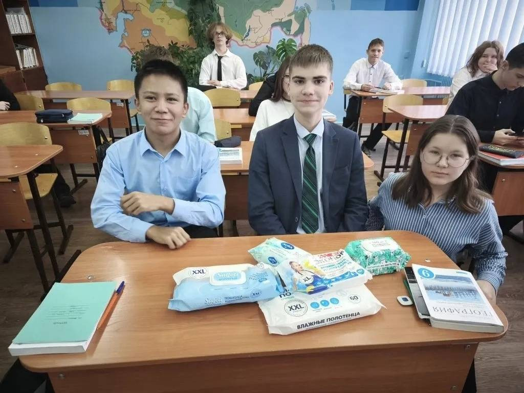 Эстафету поддержки подхватили многие классы. Уже приняли участие в сборе гуманитарной помощи (влажных салфеток, полотенец), а также в создании писем и оберегов для наших бойцов следующие классы:
