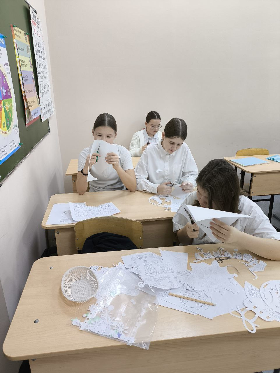 Девочки-рукодельницы предложили привести в порядок жалюзи в кабинетах, мальчики, вооружившись отвёрткой, укрепили оконные ручки в кабинетах и в коридорах. Они провели очень важную профилактическую работу, позволяющую сохранить работоспособность оконной системы. Школа у нас новая, большая, окон много, работы предостаточно. Завершающим аккордом стало украшение окон зимними узорами. Проходя мимо таких окон, невольно появляется новогоднее настроение. Вырезание вытынанки требует большой усидчивости, занимает немало времени. Благодаря нашим чудесным мамам, справились значительно быстрее.