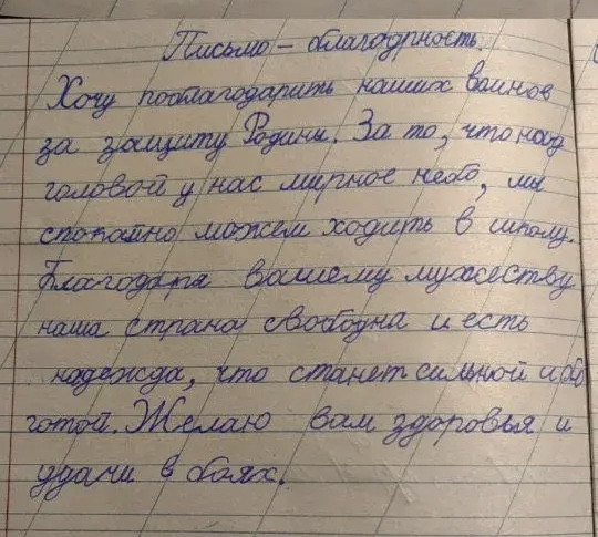 Дети предложили выразить благодарность своему учителю за его труд, отблагодарить за героизм нашим воинам, которые находятся в зоне СВО, порадовать их подарками и письмами. Второклассники изготовили своими руками игрушки , поделки , написали письма, в которых выразили им свою благодарность и признательность за службу, поздравили с наступающим Новым годом.