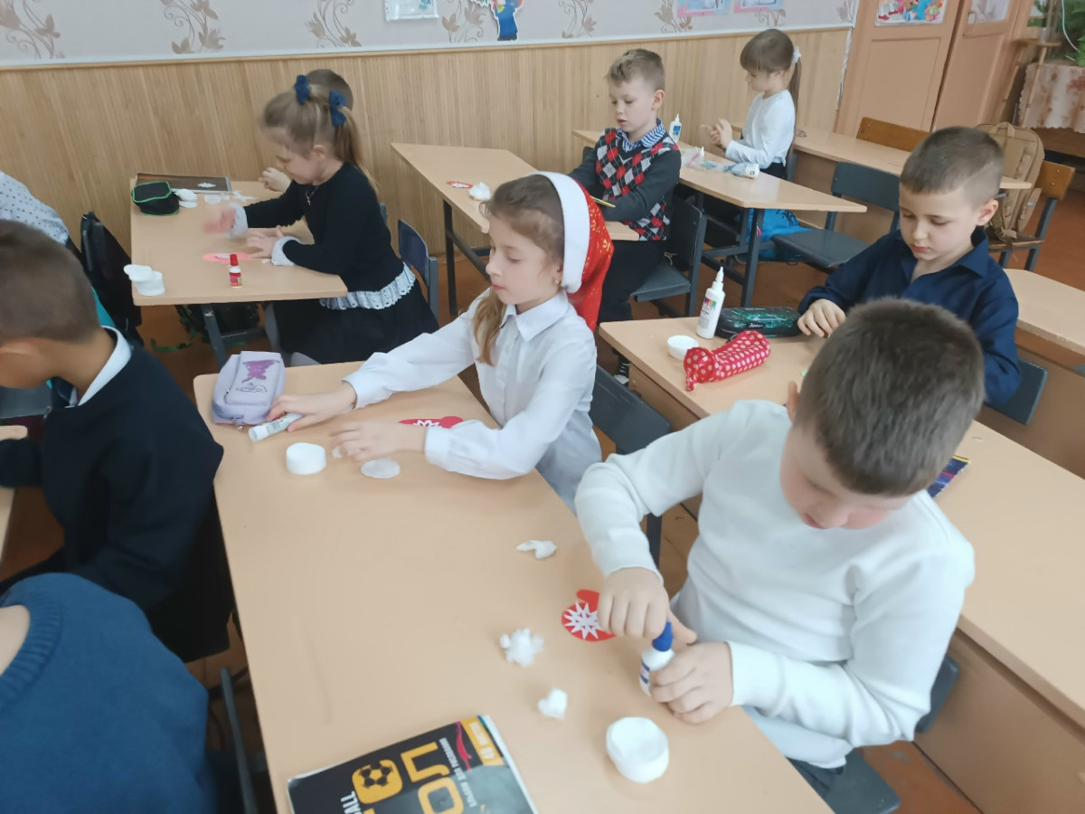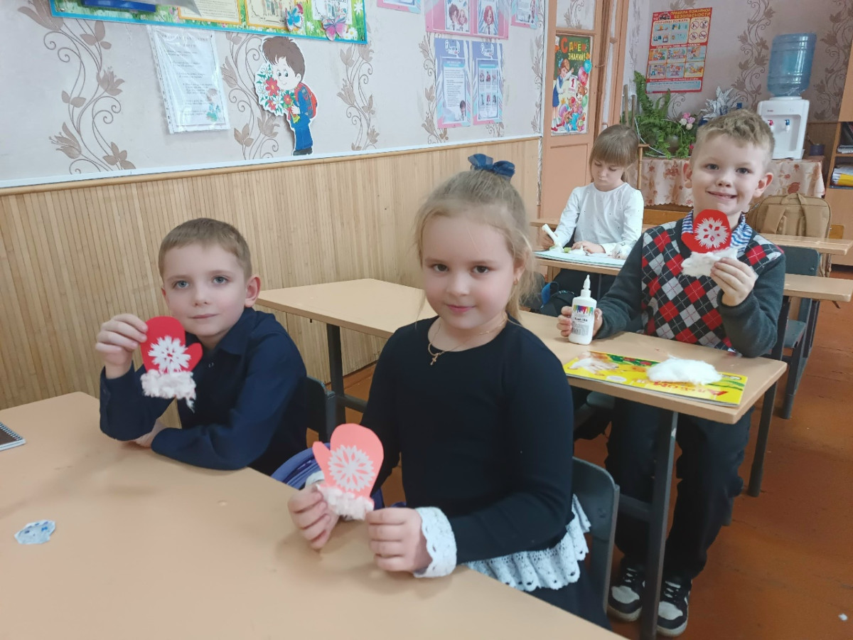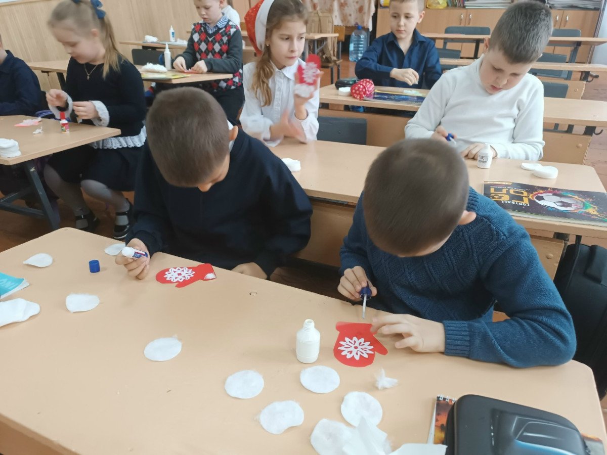 Вдохновленные увиденным, ребята решили создать праздничное настроение в своем классе. С большим энтузиазмом они принялись за работу и смастерили замечательные новогодние украшения – "волшебные варежки".