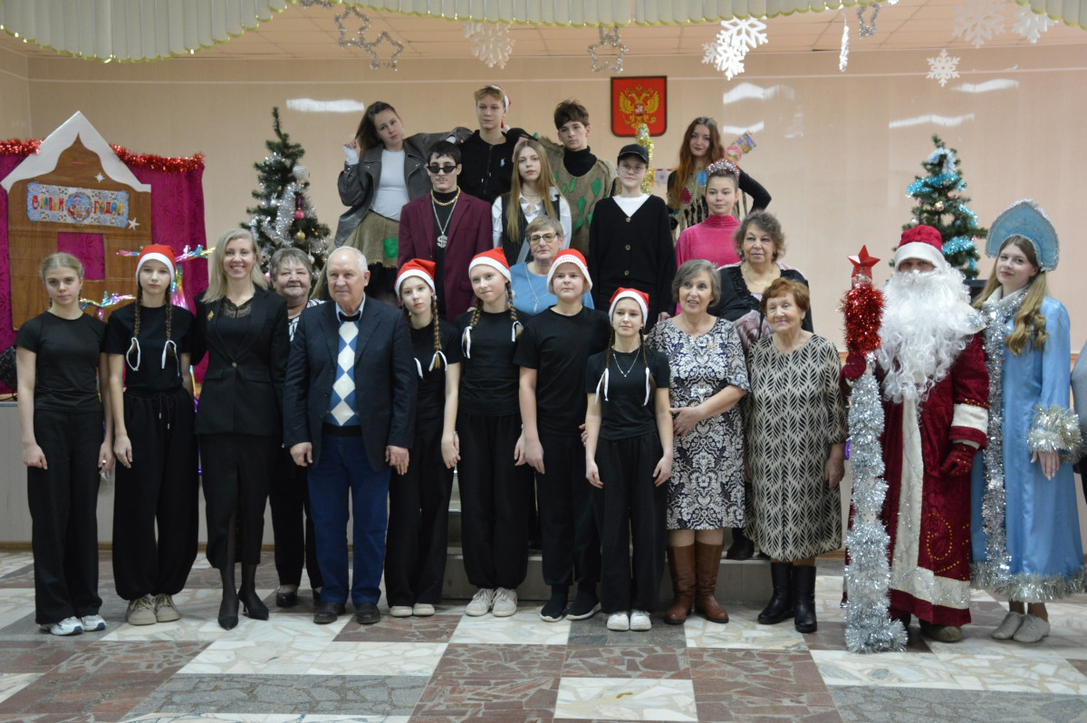 Конечно, после просмотра фильма ребята захотели совершить какой-нибудь добрый поступок, принести кому-то радость. Обсудив с классным руководителем своё желание, старшеклассники решили устроить праздник для ветеранов педагогического труда, как делали это в прошлом году выпускники — учащиеся 11 а класса. Это мероприятие стало с недавних пор школьной традицией. Ребята сами вызвались её поддержать и принять участие в постановке новогоднего спектакля. Помимо старшеклассников, к участию в концерте привлекли танцевальную группу «Винтаж» (7 б класс). Эти ребята стали победителями муниципального танцевального батла «В ритме жизни», и теперь они охотно выступают на школьных мероприятиях. Одну из ролей в спектакле также исполнил ученик 7 б класса — Орлов Саша. Кстати, семиклассники тоже приняли участие в проекте «Киноуроки в школах России»: в декабре они посмотрели фильм «Музыка внутри». Можно сказать, проект объединил два класса одним добрым делом.