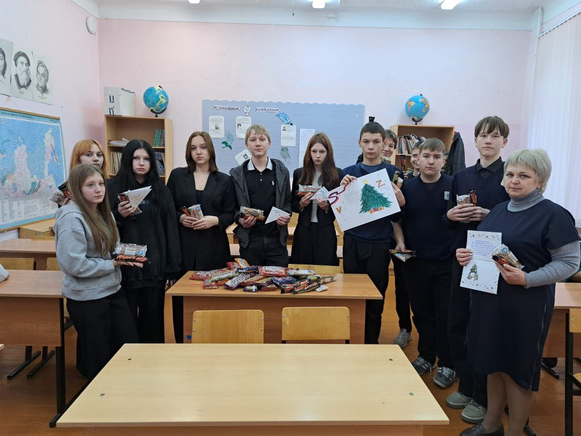 Главный урок, который мы вынесли, помогать можно и нужно ,здесь и сейчас,начиная с малого. Мы перешли от обсуждения к реальной практике. Инициатива Ребята вспомнили, что в прошлом году они уже запускали свой "Поезд доброты". Практика была инициирована ребятами. Инициативу взяла в свои руки Влада Шемчук. Она предложила помочь убрать квартиру одинокой бабушке. Ребята нашего класса всегда помогают ей(убирают снег, ходят в магазин, приносят воду). А также девочки вместе с Валентиной Васильевной написали письма солдатам. Полина предложила продолжить нашу традицию поздравлять участников СВО. Вместе с родителями мы закупили сладости,написали письма и сделали собственными руками "Елку-пожеланий". Нашим солдатам мы подарили не просто подарки, а внимание и добрые слова, которые были написаны нашими родителями.