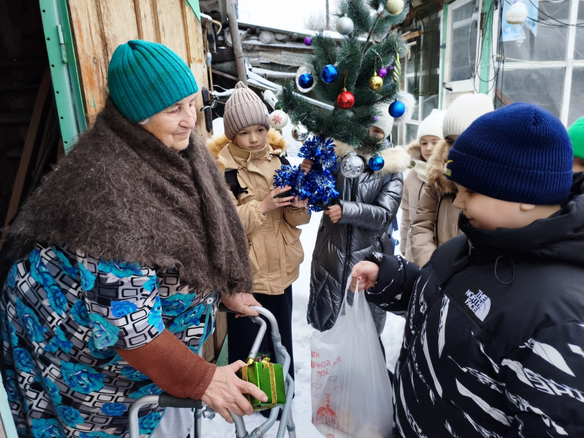Не раздумывая, ребята предложили идею проведения доброго дела- организовать поздравление с наступающим Новым годом, одинокую бабушку, Лилию Ивановну, над которой взяли шефство, как тимуровцы (практика № 91427). В ходе обсуждения составили план – список реализации доброго дела. Решили подобрать и выучить стихи- поздравления с наступающим Новым годом. Какой же Новый год без ёлки. Ёлку решили купить на деньги, которые были в копилках ребят. Часть игрушек для украшения ёлки сделали своими руками, а часть принесли из дома. К доброму делу подключились родители, помогли закупить гостинца для Лилии Ивановны. И когда всё было приготовлено, ребята с удовольствием поздравили бабушку с Наступающим Новым годом, Лилия Ивановна сказала ребятам, что они подарили ей новогоднее настроение. После проведения социальной практики, ребята пришли к выводу, что творчество –это деятельность, в которую вкладываешь душу. Творчество помогает делать добро и улучшает настроение!