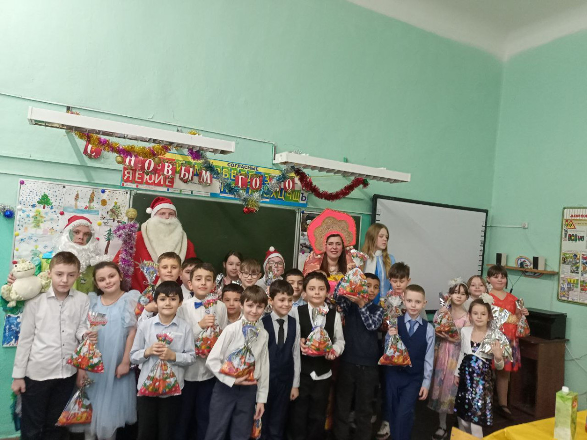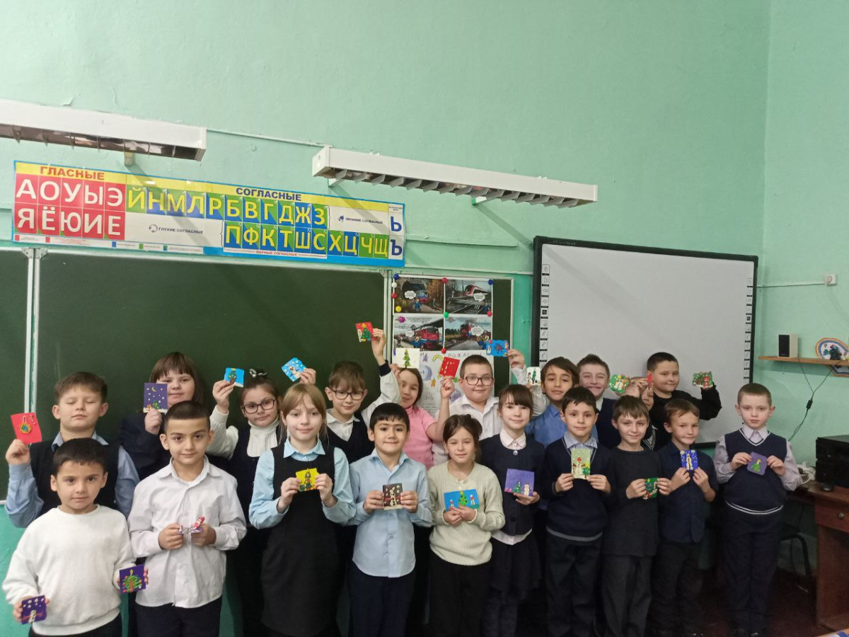 Перед Новым годом ученики 2 класса решили сделать новогодние открытки. Также в школе прошёл новогодний праздник со сказочными героями. Ребята пели песни, читали стихи, водили хороводы, получили сладкие новогодние подарки.